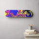 O skate psicodélico do Derramar de óleo azul apresenta uma arte de fluido de triquete inspirada no impressão "derramar de óleo" feito em azul, amarelo, rosa e preto.