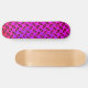 Um padrão repetitivo se espalha através de um fundo psíquico roxo e cor-de-rosa neste skate engraçado.