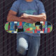 Este skate multicolorido com logotipo de sinal de paz é perfeito para skatistas radicais ou qualquer pessoa que goste de transporte colorido.