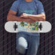 Aloha! Quebra de Ponto! Dream Landscape com uma garota nos convidando para surfar e divertir-nos, esporte, em liberdade de cheio. Desenho criado com o gráfico Computador 3d 2d.