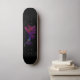 design decorativa de uma ave mítica da fênix espalhando suas asas e decolando enquanto colorida em todas as cores do arco-íris em um skate.