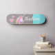 Surpreenda uma garota com esse 'Rainbow' Teal Silver Glitter Personalizado skate. CLIQUE EM PERSONALIZAR MODELO OPTION E ENTER NAME Legal skateboard projetado com uma extremidade sólida e a outra falso cintilação prateada com corações. O bonito unicórnio branco tem cabelo pastel arco-íris e flores. Personalizado com o nome em letras negrito de script de caligrafia branca. Faz uma ideia de presente excelente para um amante de unicórnio!