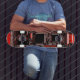 Design moderno com fecho de um conselho de circuito do computador em vermelho, preto e branco. skate com um design personalizável para você personalizar com seu próprio texto, imagens e ideias. Criado com uma fotografia original e técnicas digitais por Jess Perry.