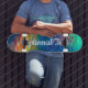 Desenho abstrato das ondulações e manchas de cor, em verde, amarelo e rosa refletidos sobre as águas azuis de um lago ou lagoa. Calma e tranquila. Personalize de acordo com o seu gosto.