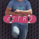 Uma fotografia de um sinal de conselho vintage peg visto num mercado de pulgas mostrando a palavra "Retro", a imagem foi tratada com um alto contraste e efeito de ponto de jornal de meio tom, o que lhe dá um ousado efeito de ressonância escolar.