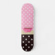 Um skate cor-de-rosa e marrom feminino do teste padrão de bolinhas com um teacup cor-de-rosa bonito aparou com uma beira na moda do coração, e uma fita cor-de-rosa bonito amarrada em um arco no punho. Personalize adicionando seu nome. Aperfeiçoe o presente para a menina feminino que amaria trazer um tea party do divertimento onde que vai!