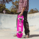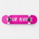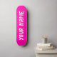 Deck de skateboard com um design arrojado em rosa quente e espaço para personalizar o nome. Perfeito para skate de rua, manobras ou como um presente divertido e personalizado para os amantes de skate.
