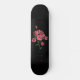 um trabalho de arte de rosa vermelha tradicional com aquarela verde e folhas num skate de cor preta.