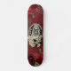 O skate de aparência angustiada da marca Dd fez uma burgundy com gráficos de uma noiva de esqueleto feitos em cores septa e sotaques vermelhos e decorações florais de rosa vermelha profunda em ambas as extremidades.