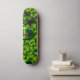 Ride with the luck of the Irish on the Saint Patty's skateboard this vibrant design features an adorable black cat dressed in a full dapper leprechaun suit complete with a green top hat and gold buckles set against a lush backdrop of cascading four leaf clovers and a giant green hat this deck is the perfect blend of festive fun and cool feline