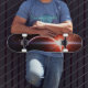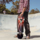 Um skate que caracterize um planeta, pelo nome de Saturn. É um conselho preto que tenha os esboços do planeta, Saturn