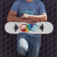 Símbolo infinito desenhado artificialmente com uma bela pena arco-íris sobre fundo branco. Tatuagem.