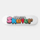 Street Skater em letras coloridas de bolacha. A Patinação de Rua é um estilo que usa freios, degraus, bancos etc, para realizar truques. As cores podem ser alteradas