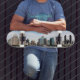 A skyline de San Diego com água no céu azul dianteiro e nebuloso no fundo.