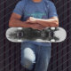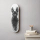 O skate "Stella" apresenta um retrato monocromático impressionante de um Grande Dane, criado com a ajuda da IA. A imagem do cão, detalhada e nobre, é colocada sobre um fundo branco estrelado, com pingos de tinta abstrato negra fluindo para baixo, dando-lhe um sentimento artístico sujo. Este design captura a presença majestosa da raça, fazer "Stella" não apenas um skate, mas um pedaço de arte em movimento.