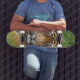 Design de skate que mostra uma foto da vida selvagem do rosto de Sumatran Tiger, que parece feroz. Um design! Selecione o tamanho do skate. Preencha o skate adicionando caminhões e rodas, se desejar.