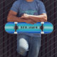 Saia no skate com este skate ousado e na moda personalizado. Apresentando um legal design de faixa de gradiente azul e personalizado com seu próprio nome em letras negras elegantes, este conselho combina estilo e individualidade. Perfeito para skatistas que querem tornar suas engrenagens únicas, ou como um presente personalizado e pensado para amigos e familiares.