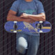 Um skate fazendo algumas acrobacias sérias no parque de skate local.