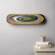 Os tons de terra girando se misturam com verdes, brancos e um toque de vermelho para criar um interessante design abstrato.