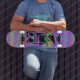 Quer você esteja fazendo sorvetes na metade ou 'kickflips' na rua, este conselho de competição em forma de competição tem pop supremo! Nossos pavimentos são feitos de um mapa de rochas duros de melhor qualidade e com nosso processo de impressão de um tipo; você tem o melhor skate disponível no mundo. Um fêmur abstrato colorido com um aspecto de corante de gravata em tons de roxo, rosa, amarelo, laranja, turquesa, verde limão e muito mais! O texto pode ser mudado para o que você quiser. Acerte o baralho em estilo!