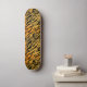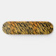 Listras de laranja e tigre de ouro sobre fundo preto fazem um skate excitante.
