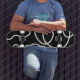 Traços de pincel de Abstrato meio século moderno de de de - Linha Mínima - Fundo preto com linhas brancas natas.
