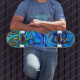 Expresse seu estilo exclusivo com nosso skate de arte de abstrato, com um design azul legal. Disponível apenas como um andar ou como um skate completo com caminhões e rodas, este conselho é perfeito para patinadores que querem se destacar. Desfrute da combinação perfeita de arte e desempenho com este skate de destaque.