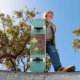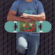 Uma cor azul/verde do pavimento 7 3/4 do skate, com uma imagem de Tulips nele.