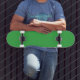 Skate um fundo verde com borda branca