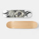 Este é um skate com um design flamejante do crânio. Em vez do branco usa a cor regular do conselho.