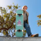 Um skate de unicórnio bonito. Fundo azul e skate da casa de unicórnio.