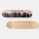 skate feminino personalizado com brilho rosado e faxes pinto pingando contra fundo preto. Você pode adicionar seu primeiro nome em letras em negrito através da lente.