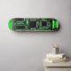 Design moderno com fecho de um conselho de circuito do computador em verde, preto e branco. skate com um design personalizável para você personalizar com seu próprio texto, imagens e ideias. Criado com uma fotografia original e técnicas digitais por Jess Perry.
