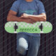 Prepare-se para destruir o estilo com nosso skate Checkered Skateboard em Half White e Pastel Green! Este conselho atraente é a mistura perfeita de moda e função, com um design branco e verde pastel de um lado e um verde pastel sólido do outro. E a melhor parte? Você pode adicionar seu nome para torná-lo verdadeiramente único! Então por que se conformar com um skate entediante quando você pode ter um que é tão único quanto você é? Peça seu skate branco e pastel verde checado hoje e mostre seu estilo pessoal no skate e além!