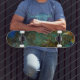 A peça de arte original impressa neste skate foi criada usando tinta na canvas. Você pode usar isto como arte montada em sua parede ou mostrá-la quando você skate pelas ruas de sua cidade e parques de skates. Agora, tudo que você tem que fazer é dominar seu sacudir de ponta e sacudir para revelar o design único no seu novo skate! Aproveite!