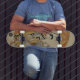 A madeira japonesa clássica cortou a paisagem impressa em um skatebboard.