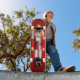 Este legal andar de skate com um velho rei maluco de uniforme vermelho, com uma coroa de ouro, barba branca e bigode pontiagudo, faz um presente incrível para qualquer criança que goste de histórias de Natal maravilhosas.