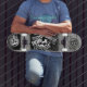 Este é um skateboard de skate do BDA 9. O BDA de alta potência "Browning" é uma pistola semiautomática de 9 mm desenvolvida no início dos anos 80. Si vis pacem, para bellum é um adágio latino traduzido como, "Se você quer paz, prepare-se para a guerra".