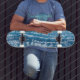 Vocês certamente começam uma conversa com este extraordinário skate de tinta azul. Os skates fazem presentes de excelente para amigos, família ou para ter um.