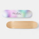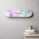 Personalize facilmente este skate colorido no design abstrato de gradiente holográfico moderno e cômodo do Rainbow Pastel, apresentando seu nome personalizado em caracteres elegantes de caligrafia. Adicione seu nome, escolha fonte, altere tamanho e posição, adicione clipart, fotos e formas.