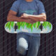 Este skate apresenta uma bela ilustração de grama e um céu azul. É perfeito para quem adora patinar quando o tempo está perfeito.