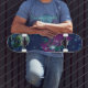 Adorando este skate decorado pelo mundo, apresenta um lagarto de alienígena gelado na noite da cidade em uma ilustração temática de ficção científica. Baseado em um desenho que eu consertei há alguns anos, eu dei a ele uma aparência esmagada com cores ricas e sombreamento para criar aquele fator uau de fantasia do céu noturno. Perfeito para amantes de ficção científica e o amor da diversão ativa.
