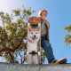 Skateboard Poderoso perro Akita japonés sentado