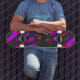 O skate "Purple Rayz" é um conjunto de rodas coloridas e legal! Os skatboards Zazzle vêm em 8 estilos diferentes no North American Maple, de origem local, e são projetados com padrões de qualidade profissionais que vão enfrentar a patinação mais dura! Obtenha fita adesiva gratuita com sua primeira compra de skate!