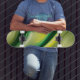 skate verde e amarelo.