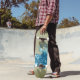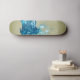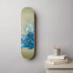 Este skate tem uma onda azul violentamente caindo no mar. O fundo é uma neblina de cinzas. Este é o trabalho de arte personalizado que é personalizável.