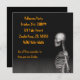 Este convite para festas de Halloween apresenta um esqueleto. Personalize este design com seu próprio texto.