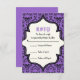 Skulls damask púrpura preto padrão preto Halloween resposta/resposta RSVP de casamento/resposta. Este design formal e elegante apresenta um padrão floral e crânio úmido e uma moldura de marfim no centro. Design clássico, porém contemporâneo, com duas fontes: uma safra e uma legal. Design elegantemente assustador, perfeito para casamentos outono góticos ou de Halloween.