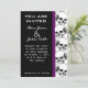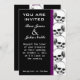 Convite preto e roxo com uma coluna de crânios na frente e atrás. Perfeito para muitas ocasiões, como casamentos, aniversários, festas de Halloween, reuniões de férias e anúncios. Disponível em outras cores.