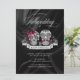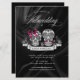Esta coleção de casamento temática gótica e escura é adequada para qualquer época do ano, incluindo Dia dos Mortos, Dia de los muertos e Halloween. O conjunto apresenta crânios, escrollwork frames de ornamentado e flores exuberantes em preto e prata com sotaques arrojados. A caligrafia "Hallowedding" elegante é opcional e pode ser excluída para usar este convite para noivado, janto de ensaio, casamento, chá de panela, solteira, festeira, conforme desejado. Um belo coração floral nas costas segura suas iniciais. Adicione os detalhes do evento usando o modelo fornecido. Procure ID866 para ver outros produtos e opções de cores para este conjunto de design.